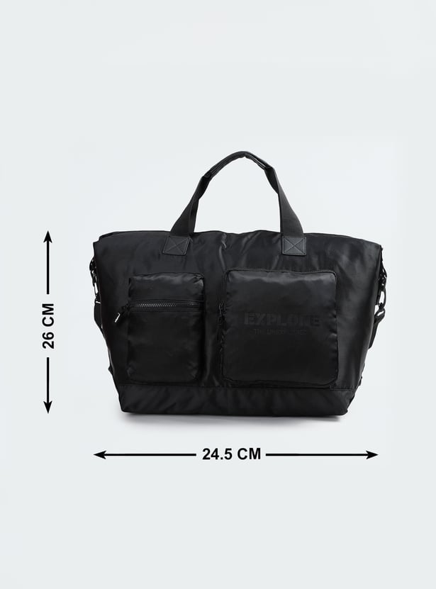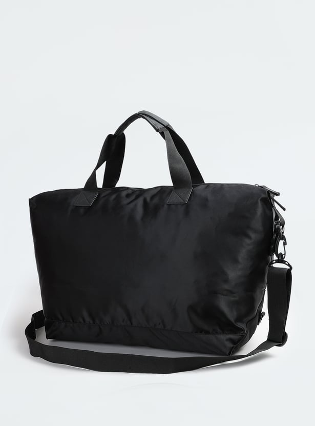 Carry your gear in style with this gym bag. The tonal print adds to the style, while multiple pockets ensure functionality. The roomy main compartment with a zip top is spacious enough for all your workout essentials. The detachable strap and twin handles make it easy to carry around.